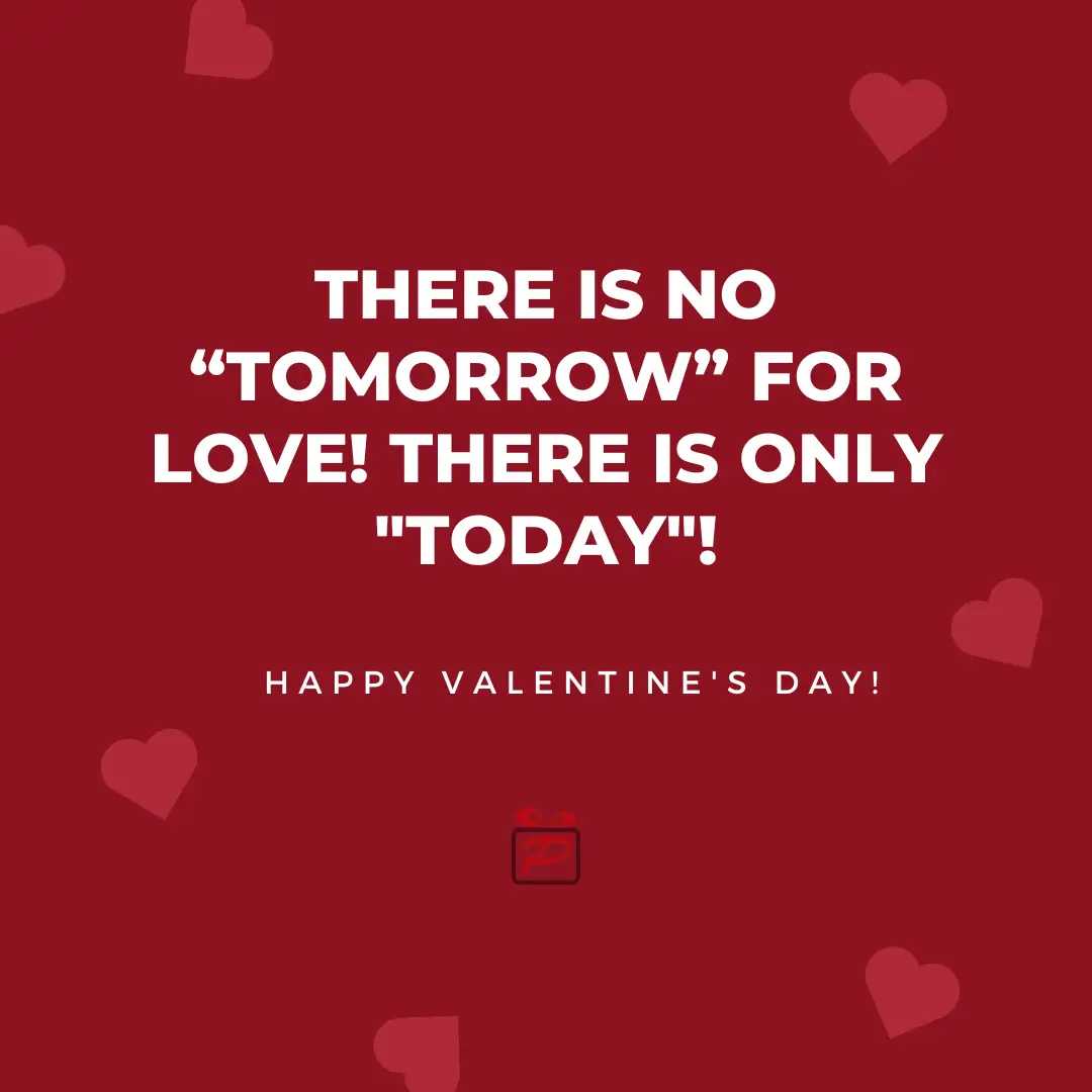 There is no “tomorrow” for love! There is only “today”! Happy Valentine’s Day!