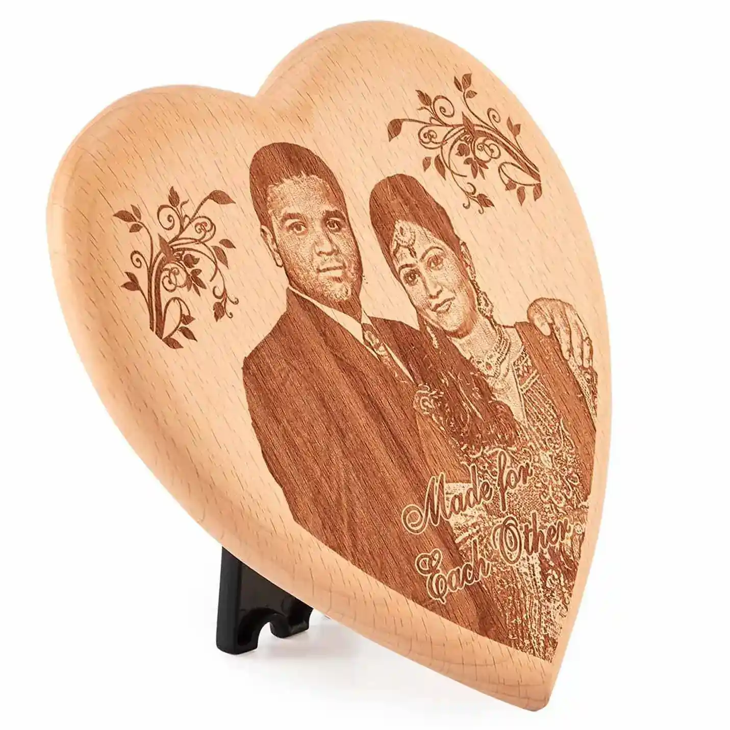 You can buy “Full HD Color Heart Shaped Personalized Wooden Plaques.” It is a laser-engraved item made with premium hardwood. On the hardwood, add one memorable image and text. The size of this item is 5.75 by 5.75 inches. Just keep the item on your table and, in your leisure time, enjoy those happy past moments.