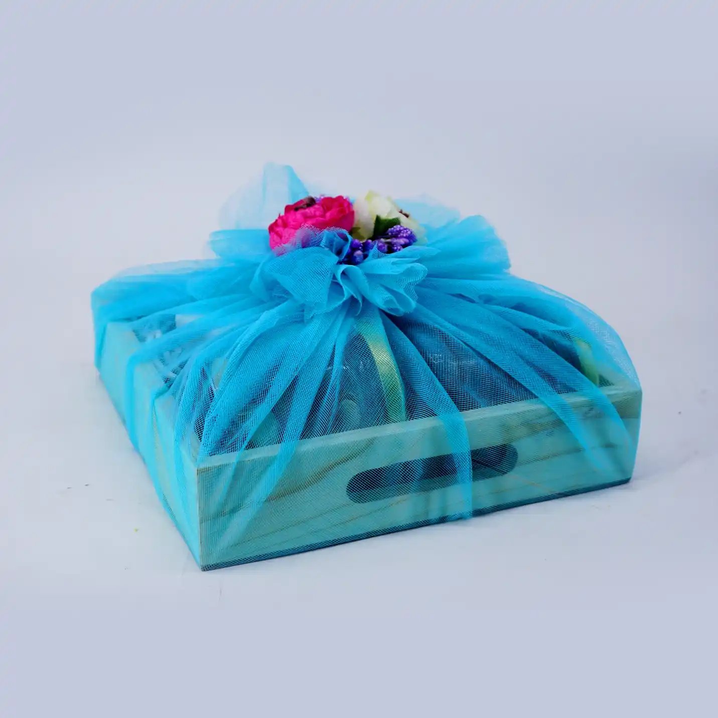 It is a package of three exclusive items. The container will carry a jar of healthy mixed dry fruits, a jar of delicious cookies, and Lakshmi and Ganesh crystals. The gifts will come in a beautiful, breakage-free, exclusive box.