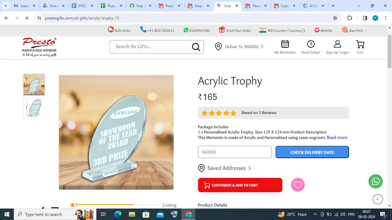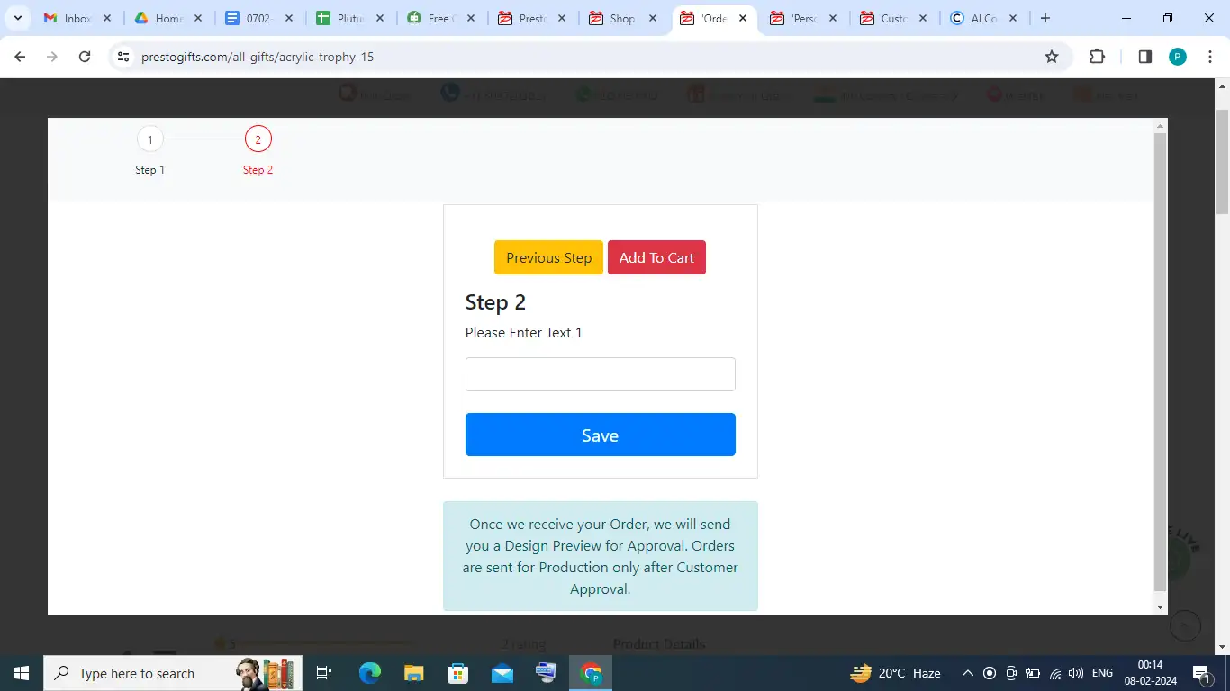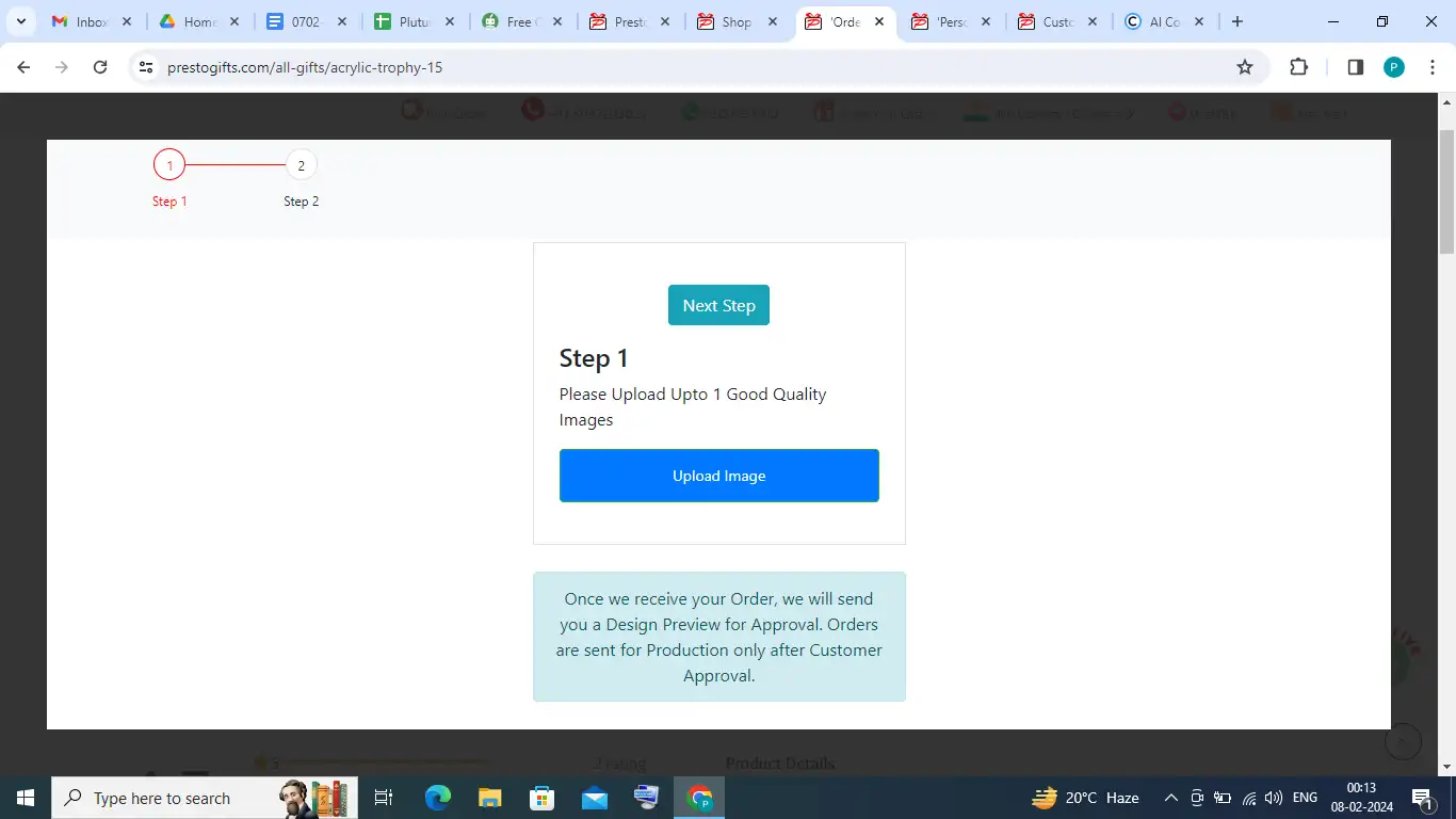 Ans. We are best at acrylic trophies. Our professional designers will give you complete personalized trophies. Your organization should provide the images, text, and logo. You can follow the simple steps and upload the picture, text, and logo easily. Just click on the “Customized and Add to Cart” section. A page will open on your screen. Just follow the steps and upload as per the order.