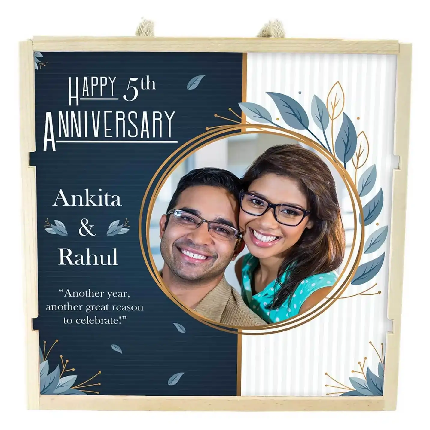 This wall clock comes with your and your partner's names and photos. It can be chosen as a personalized gift for an anniversary. It's perfect for both creative anniversary celebration ideas and how to celebrate an anniversary in a unique way.