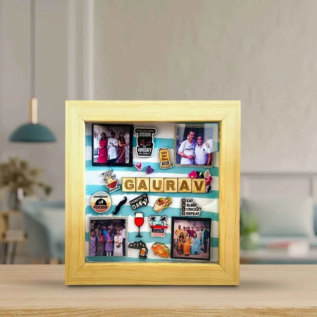 If you are looking for an out-of-the-box birthday gift for a man, you may gift him this shadow box. You can add all his favourite pictures, hobbies, food, drinks, songs, names, and other details to make it special. You can also add his favourite game & superhero character to it.