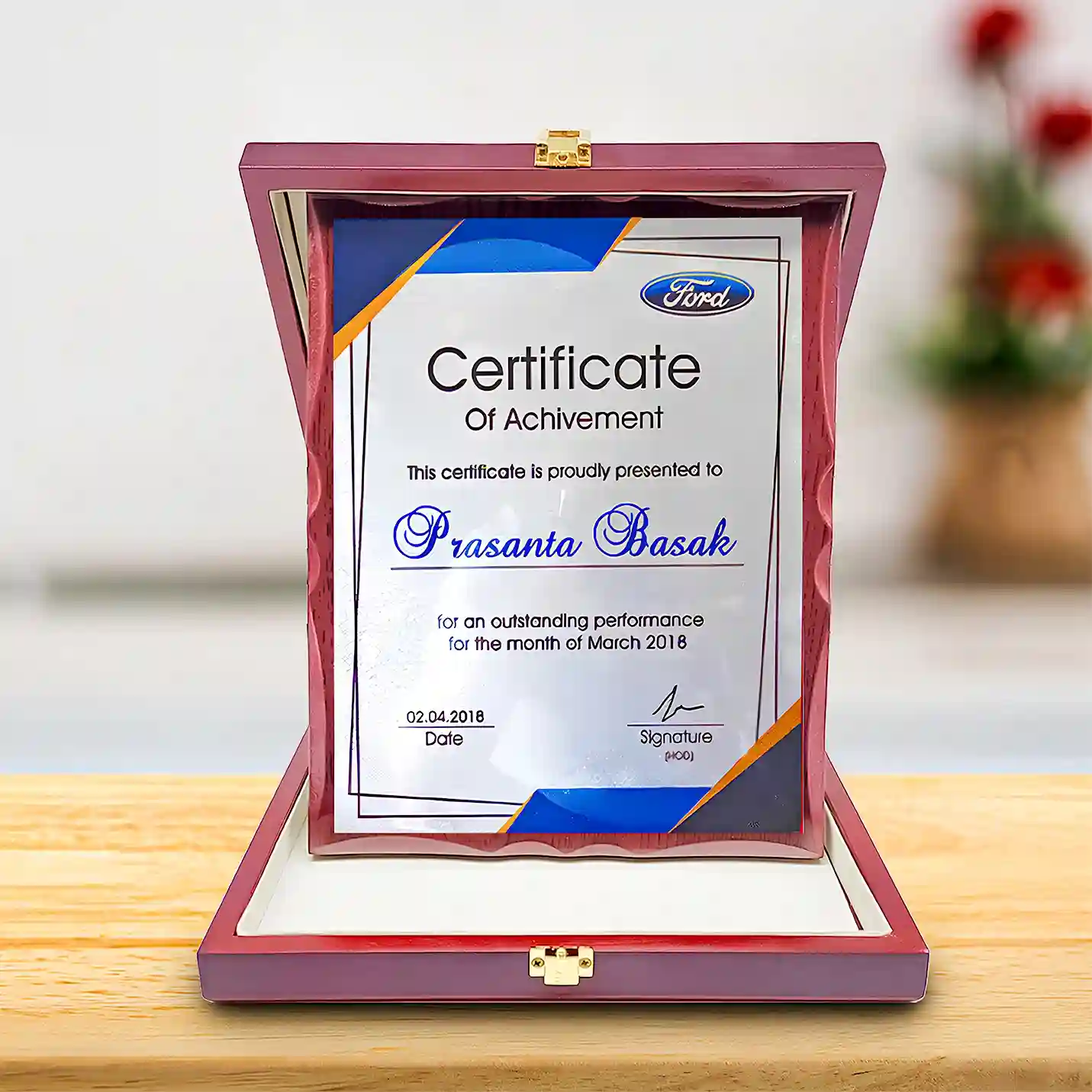 Being A4 size allows for more text, dates, award details, etc., making it ideal for achievements or honors that require more detail. It can be used as a wall hanging or placed in an office reception area.
