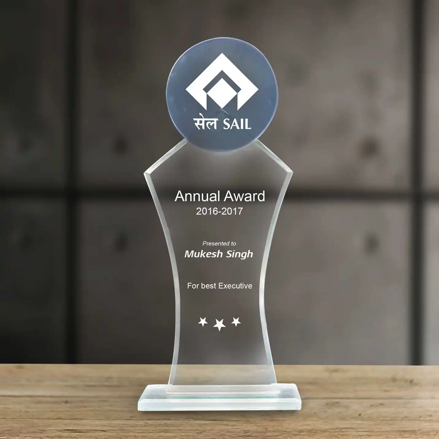 This glass memento offers a balanced size not too small, not too large making it easy to decorate in the office or home. Logos, names, and messages can be engraved on it, making it a perfect custom engraved trophy Being budget-friendly, it's perfect for large-scale corporate gifting of trophies.