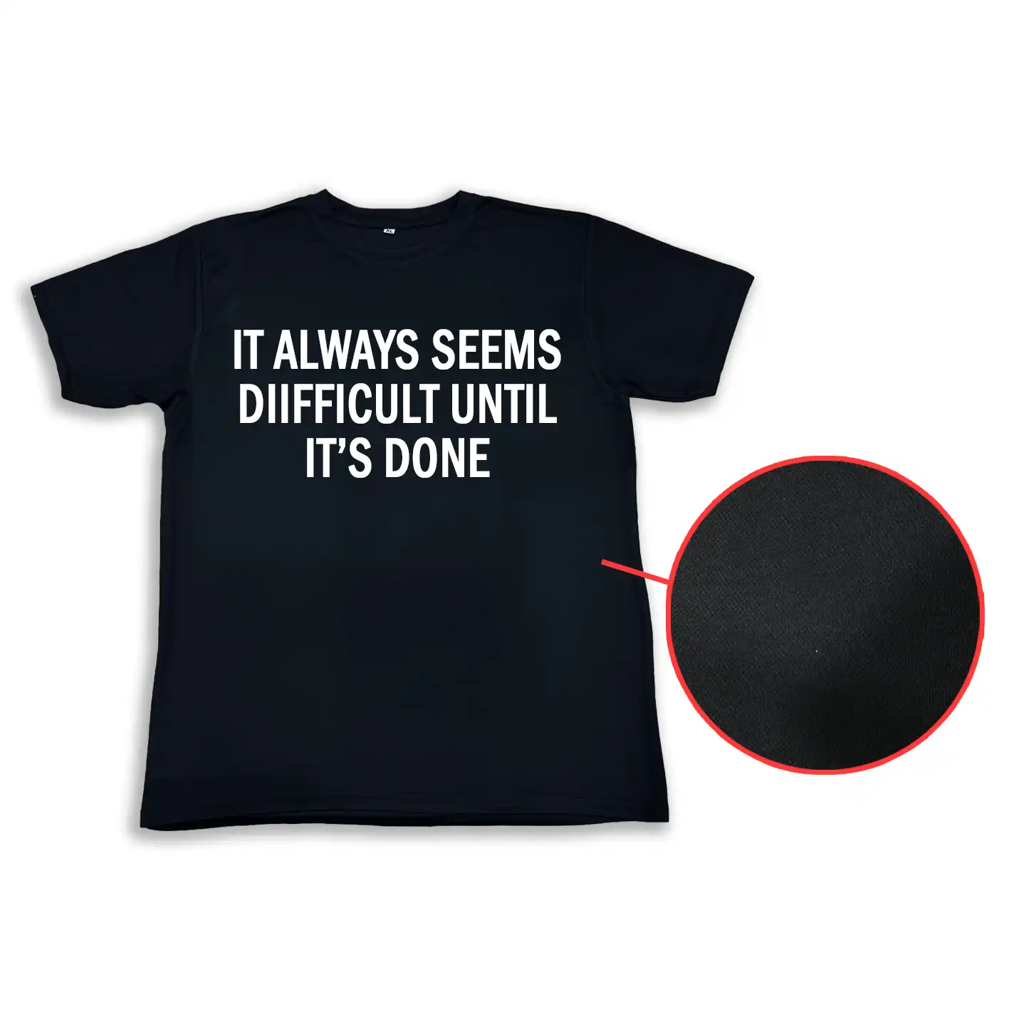 Take a look at this Casual Wear Black Round Neck T-Shirt. This T-Shirt features the message: “It always seems difficult until it’s done”; an inspiring reminder that difficulties are only temporary, and every challenging task. The fabric quality makes it even more special. It's made from a soft, breathable, and skin-friendly cotton blend, which keeps you feeling light, comfortable, and fresh all day long. The breathable material keeps you cool even in the summer and provides a comfortable experience even after prolonged wear. If you wear it yourself or gift it to someone, this T-shirt adds the perfect blend of style and motivation to your wardrobe. If you want a black T-shirt that offers comfort, style, and inspiration, then the Casual Wear Black Round Neck T-Shirt should be your first choice. Wear it and embrace every challenge, because true victory is the one that comes after overcoming difficulties. With this T-shirt, you'll feel both confident and stylish with every step you take.