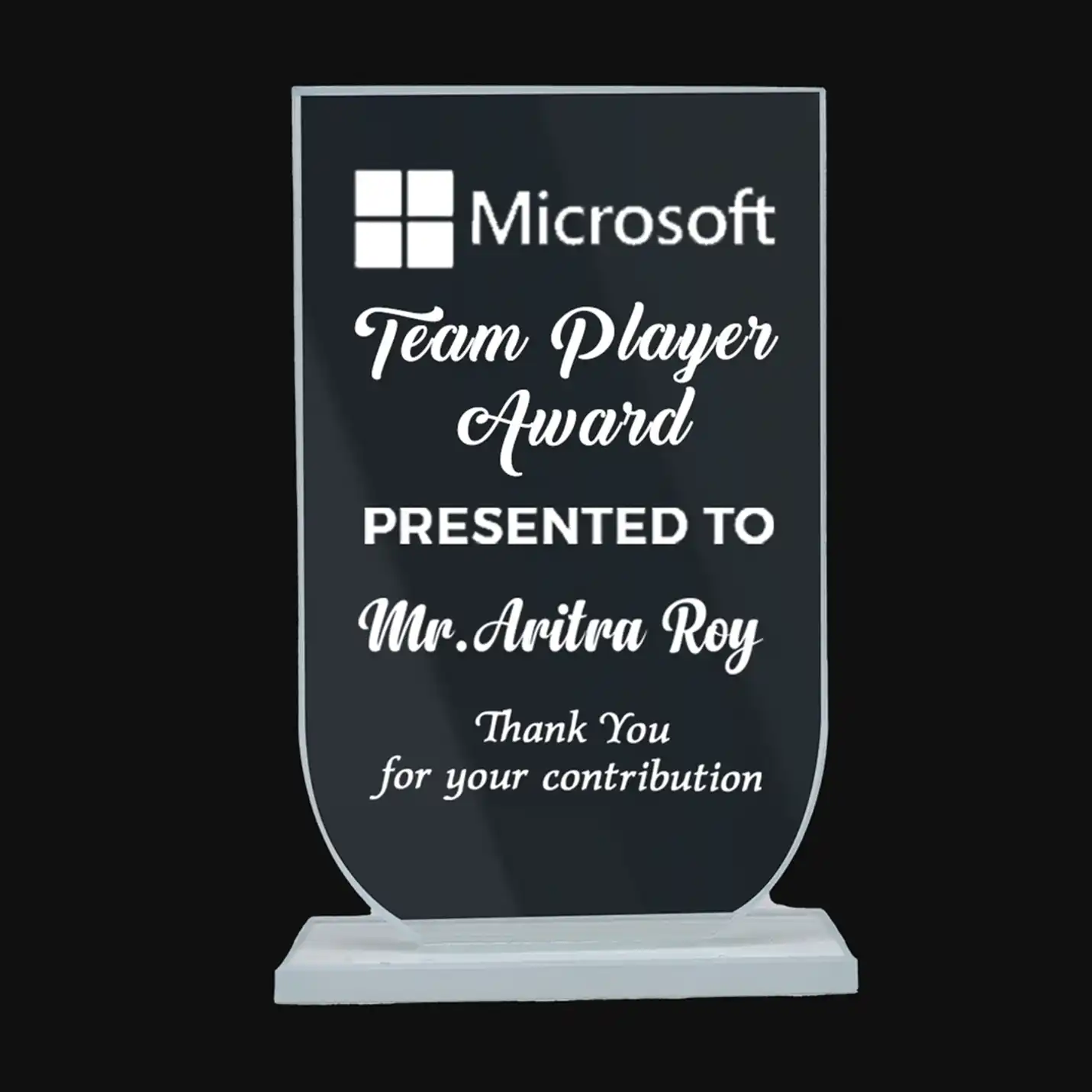 Take a peek at this Classic Curve Customized Glass Mementos. This memento is a perfect choice for those looking to gift something classic and elegant at their awards ceremony, corporate event, or personal occasion. This design makes it look attractive and stylish on any desk, rack, or presentation stand. Its crystal-clear glass finish gives it a professional touch, making it an easy addition to any modern office or event space. The lightweight and compact size make it easy to decorate and handle, allowing it to be placed anywhere and preserved for a long time. Classic Curve Mementos are fully customizable. You can engrave names, dates, company logos, or a special message. Text and logos engraved with laser engraving technology are not only clear and legible, but also long-lasting. This makes this memento perfect for corporate awards, team recognition, promotions, retirements, school and college awards, birthdays, anniversaries, and other personal celebrations. This memento serves not only as a gift but also as a symbol of appreciation for the recipient's hard work, dedication, and accomplishments. The elegant design, durable construction, and personal touch make it a special addition to every corporate and personal event.