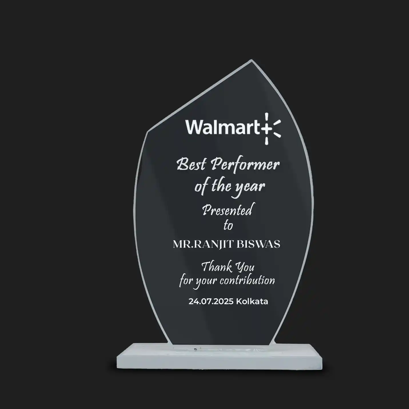 Take a peek at this Classic Curve Customized Glass Mementos. This memento is a perfect choice for those looking to gift something classic and elegant at their awards ceremony, corporate event, or personal occasion. This design makes it look attractive and stylish on any desk, rack, or presentation stand. Its crystal-clear glass finish gives it a professional touch, making it an easy addition to any modern office or event space. The lightweight and compact size make it easy to decorate and handle, allowing it to be placed anywhere and preserved for a long time. Classic Curve Mementos are fully customizable. You can engrave names, dates, company logos, or a special message. Text and logos engraved with laser engraving technology are not only clear and legible, but also long-lasting. This makes this memento perfect for corporate awards, team recognition, promotions, retirements, school and college awards, birthdays, anniversaries, and other personal celebrations. This memento serves not only as a gift but also as a symbol of appreciation for the recipient's hard work, dedication, and accomplishments. The elegant design, durable construction, and personal touch make it a special addition to every corporate and personal event.