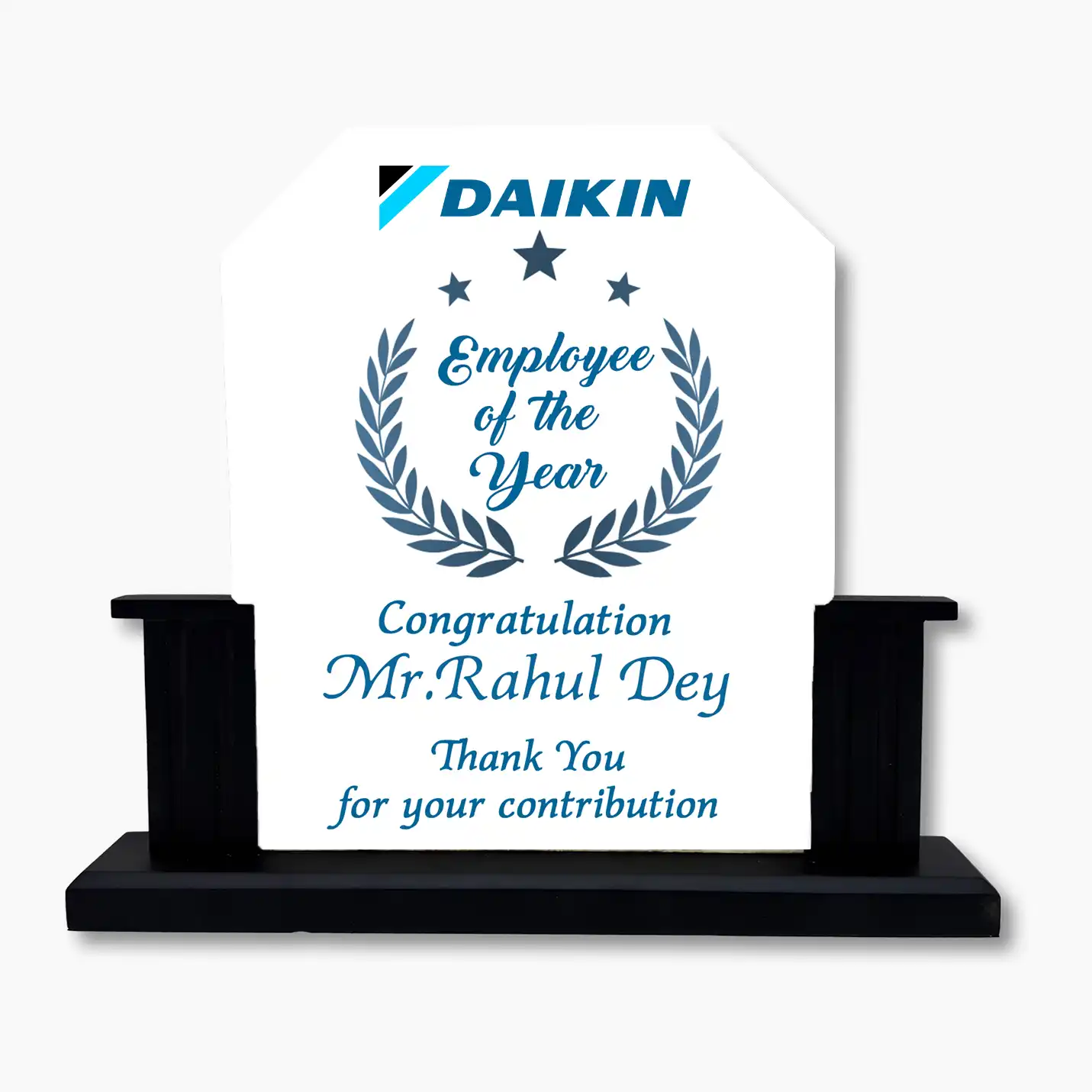 Presto's Customised Tabletop Glass Plaque is an eye-catching artwork to celebrate accomplishments and goal achievements. This durable plaque is customised as per your specifications, for instance, logo, text, and name. It can be used for Corporate Events, Awards Etc.