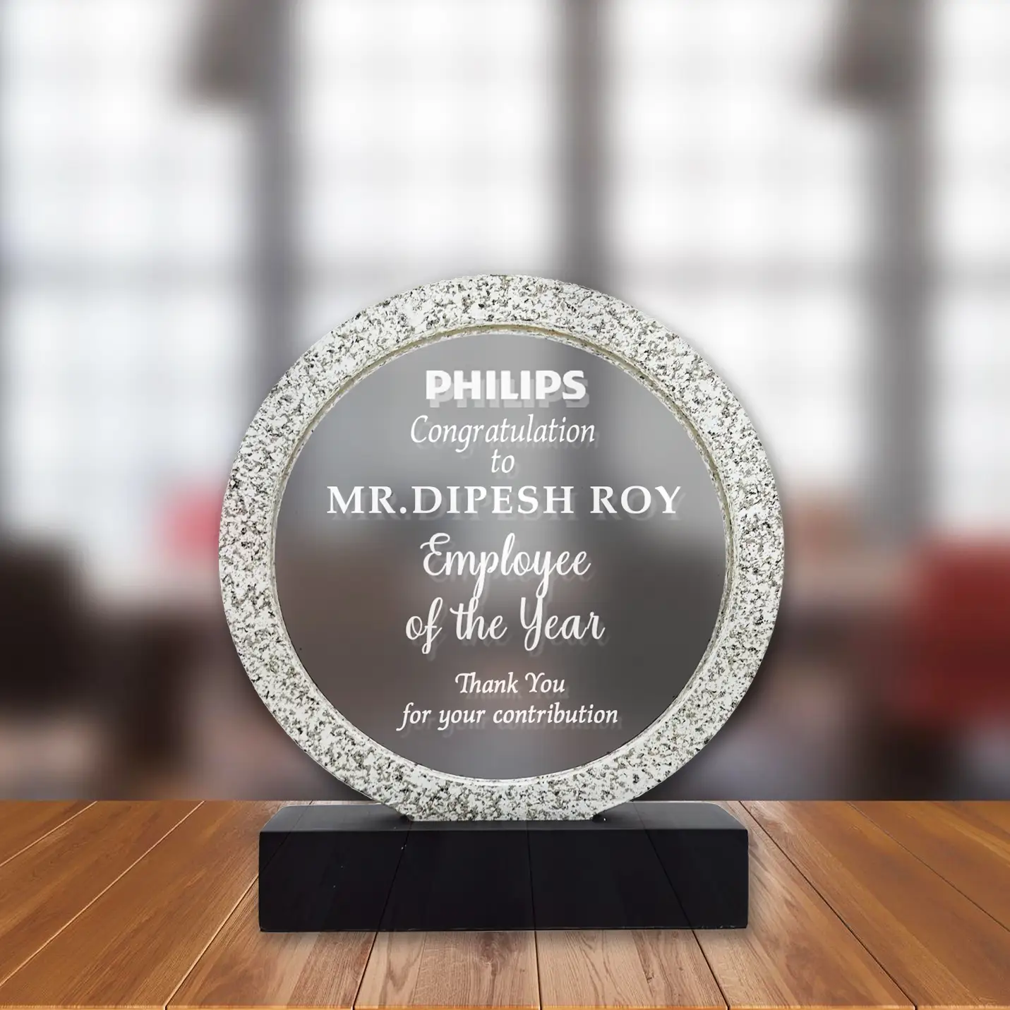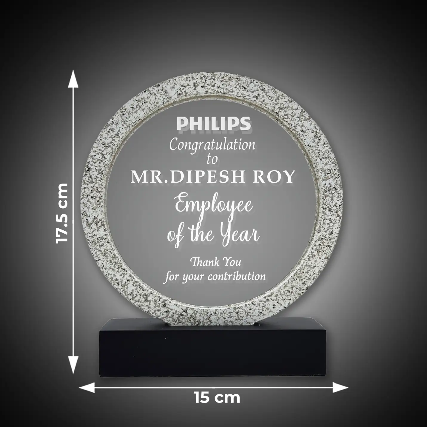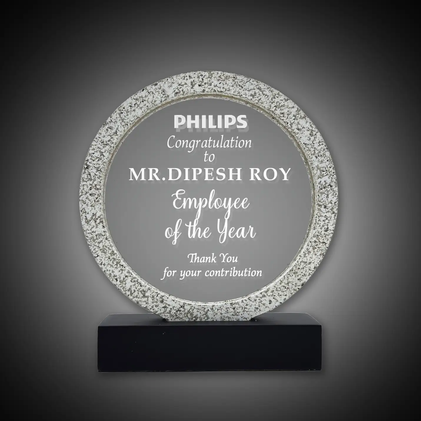 This Memento is made of crystal and Personalised using sand blasting Technology. Comes with a black wood base.Suitable for Logos, Photos and text. This product will meet your requirement when looking for a modern Corporate Gift. Upload any Logo, Picture and text that you want. Our designers will make the design and send it to you for approval. The product will be made only after your approval so you are guaranteed to receive what you liked.