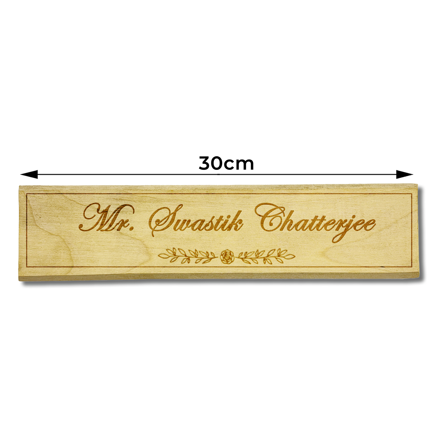An elegant Name Plate for your Elegant Office. Your Name, Design etc are printed on the Name Plate using Co2 technology. The Prints are fade-proof for 200 years. The product comes with a hanging and stand system so you can install it on the Door or make it stand on the table as soon as received.