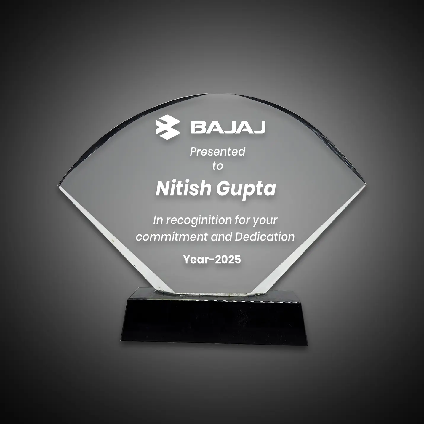 1 x Customized 3D Crystal Award of Size 18 x 25 cm