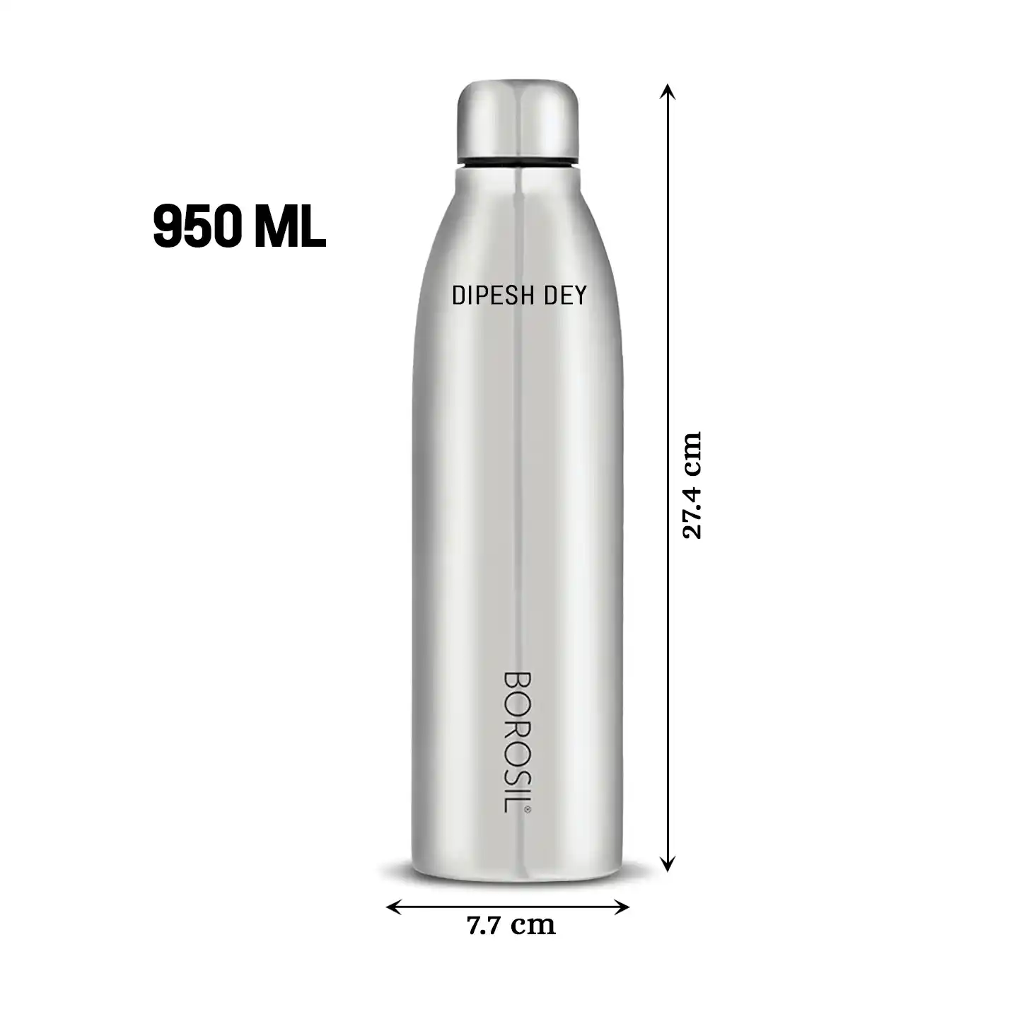 'Elegant Borosil Single Wall Steel Bottle – 950ml '