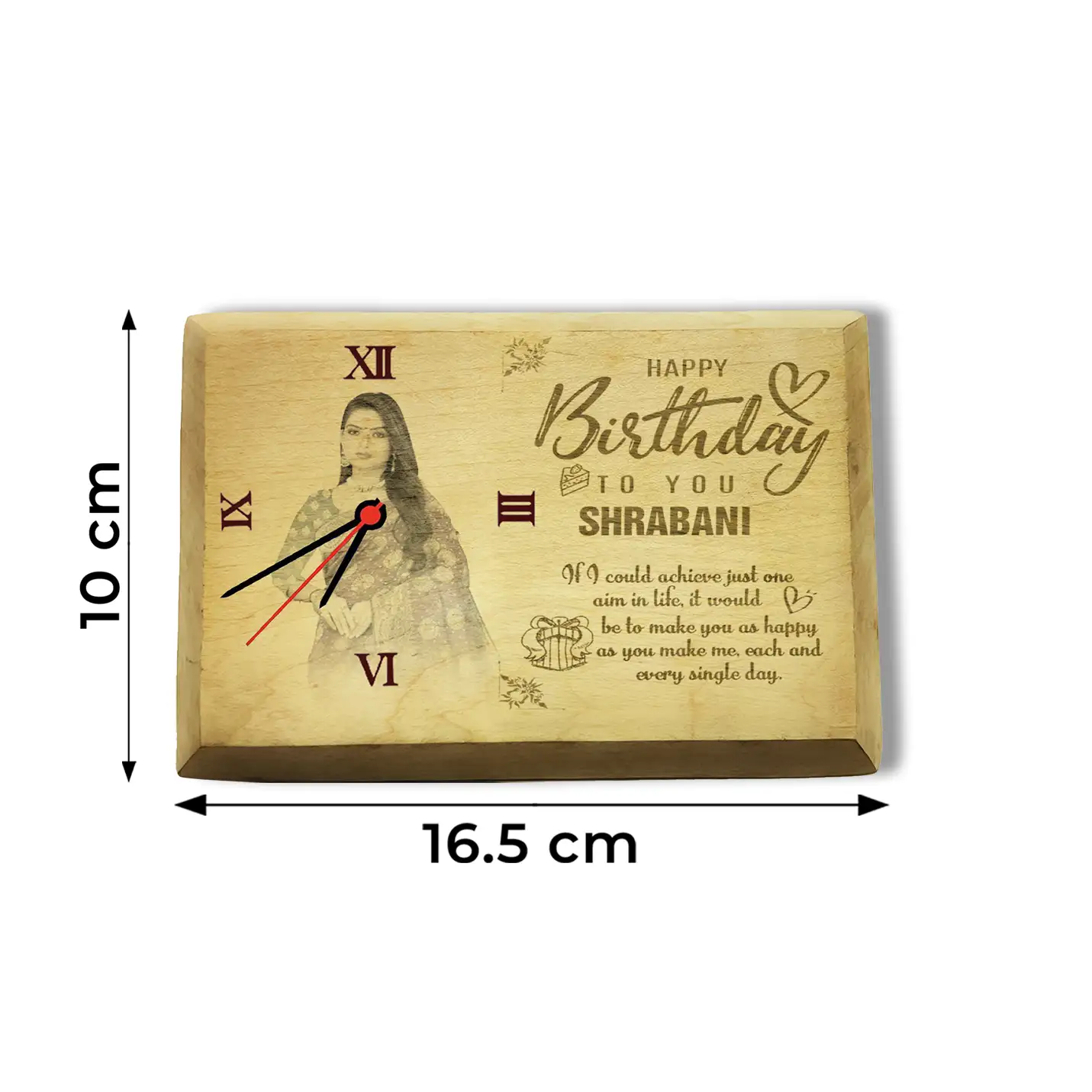 Presto's Real hardwood wooden photo clocks are printed with state of the CO2 engraving . Technology to give you the most vivid and sharp prints possible. Guaranteed to be fade resistant for 200 years. Ideal for any occasion. Comes with a stand and a hanging attachment. Clock size 10 x 16.5 cm. Our Plaques are made of genuine hardwood and carry a melamine coating so that only memories settle on them.Upload the image you want to customise and we will send you the frame design with the uploaded photo for your approval.