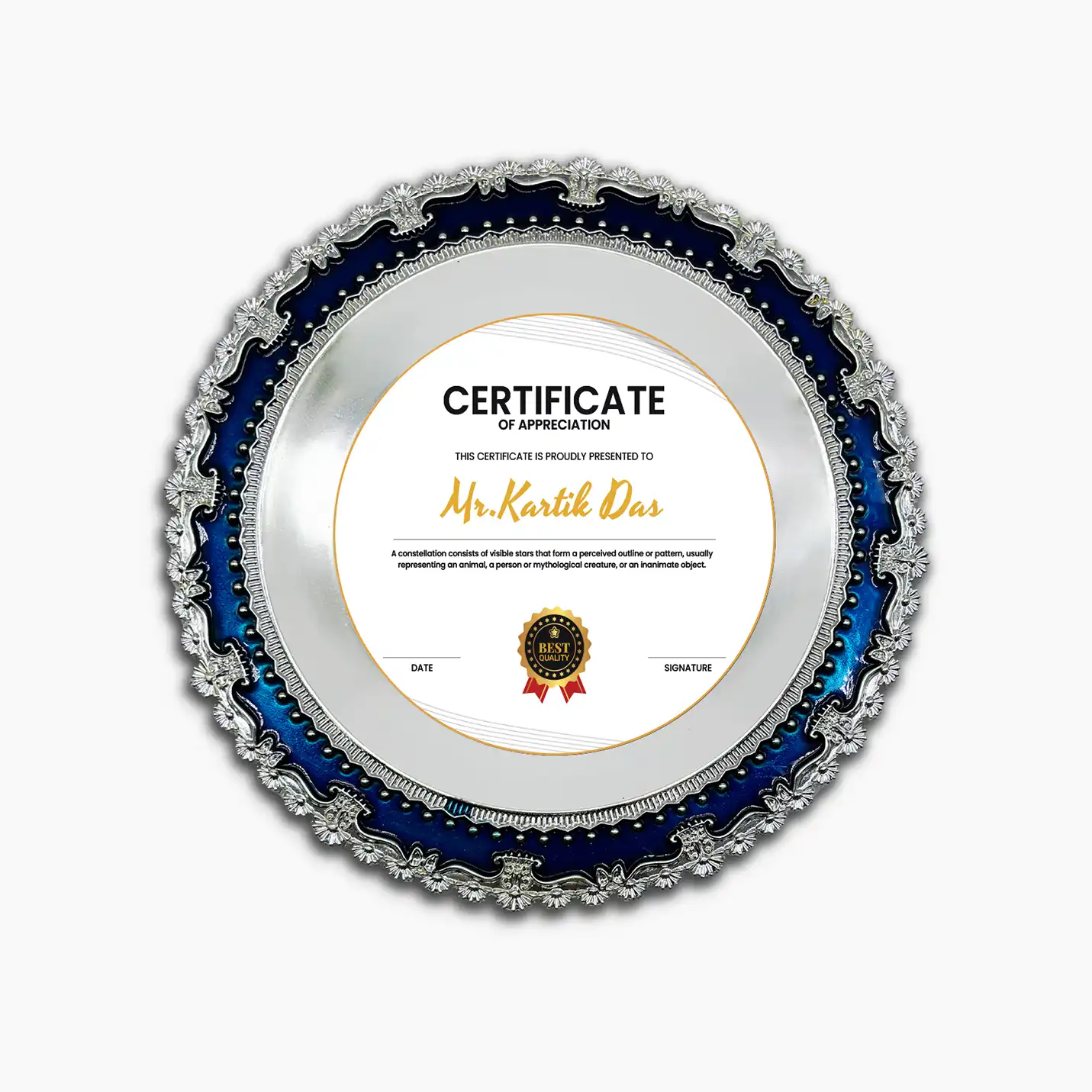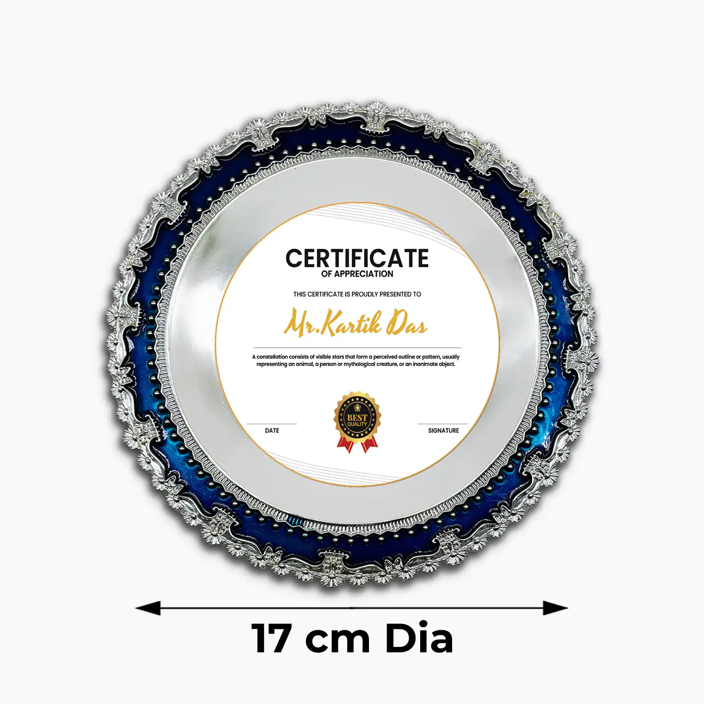Metal Crest Round in 17cm dia size. Sublimation Printed Metal sheet included.This product will meet your requirement when looking for an elegant yet affordable Memento. An elegant Business and Corporate Gift. Have the matter of your choice Printed. Upload any Logo,picture and text that you want. Our designers will make the design and send to you for approval. The product will be made only after your approval so you are guaranteed to receive what you liked.