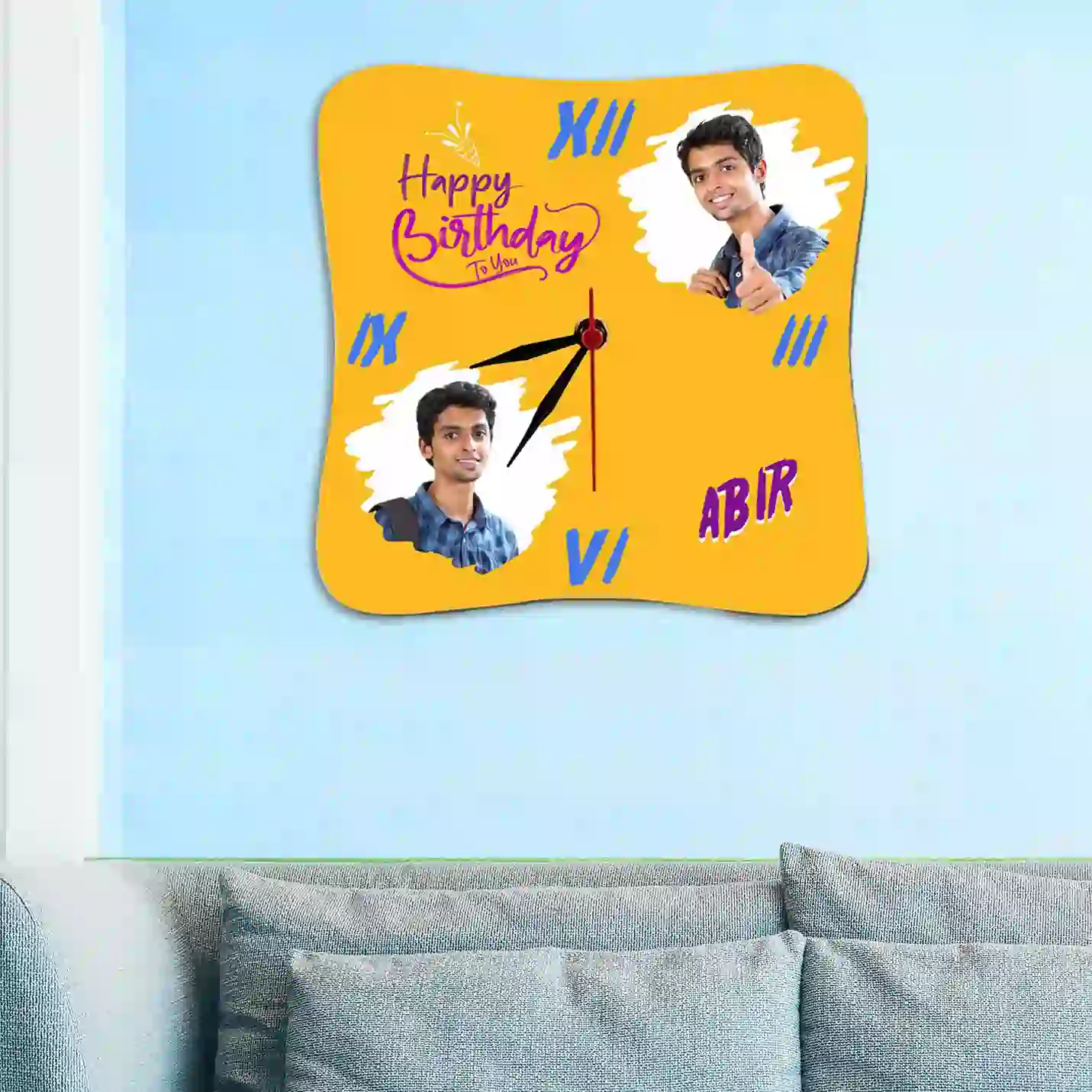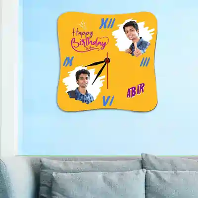 This Personalised clock from Presto is printed on Hardboard . The prints are guaranteed to be fade proof for 200 years. Clock Size is 10 x 10 inch and comes with a hanging attachment so that it finds a place of pride on your wall immediately on arrival. The product is customised by our digital printing technology so that the print never fades away.We customise the product with your text and image. Ideal for any occasion.