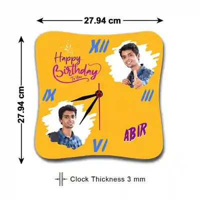 This Personalised clock from Presto is printed on Hardboard . The prints are guaranteed to be fade proof for 200 years. Clock Size is 8 x 8 inch and comes with a hanging attachment so that it finds a place of pride on your wall immediately on arrival. The product is customised by our digital printing technology so that the print never fades away.We customise the product with your text and image. Ideal for any occasion.