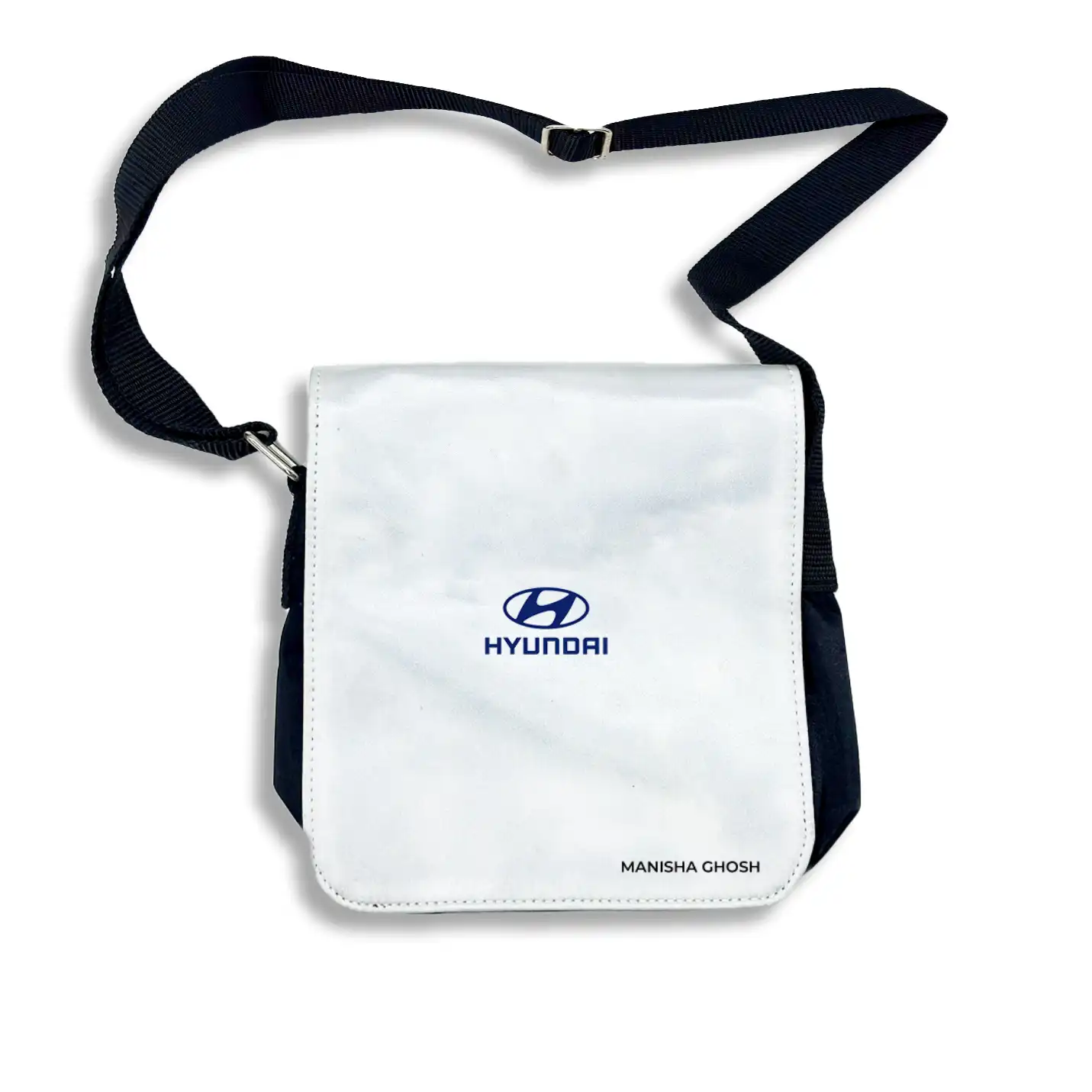 Make your brand travel everywhere with this customized sling bag, designed for daily utility and professional appeal. Crafted with durable fabric and a sleek white finish, this sling bag is perfect for employees, event giveaways, conferences, promotional campaigns and also for personal uses.