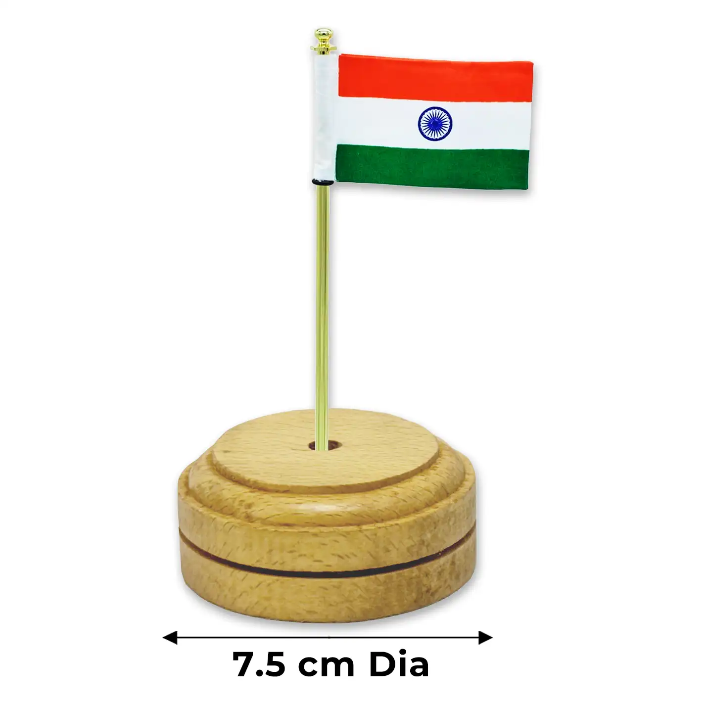 A tabletop flag with a wooden base is good for office desk decoration.