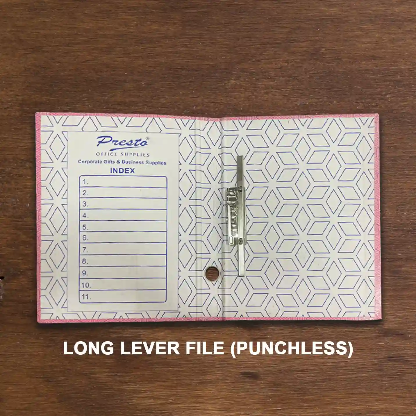 Presenting the Long Lever File, an excellent solution for modern offices, schools, colleges, and corporate use. You can simply secure your documents by pressing them into the clip. This feature is extremely useful for users who want to avoid frequent physical filing or want to store important papers without damaging them. The file's long lever clip is strong, durable, and easy to use. Its mechanism is very smooth, allowing you to add and remove documents quickly. The clip doesn't loosen and holds the papers firmly, preventing your documents from scattering even when the file is open. In terms of design, the file's inner printed pattern gives it an attractive and professional look. The included index page allows you to categorize documents based on different subjects or dates, making it incredibly easy to find your papers. The file's quality and finishing make it suitable for regular use. With its affordable price, durable materials, and high utility, the Long Lever File (Punchless) can become the primary choice for every professional or student. If you want to make your document management easy, smart, and well-organized, this file is the perfect option for you.