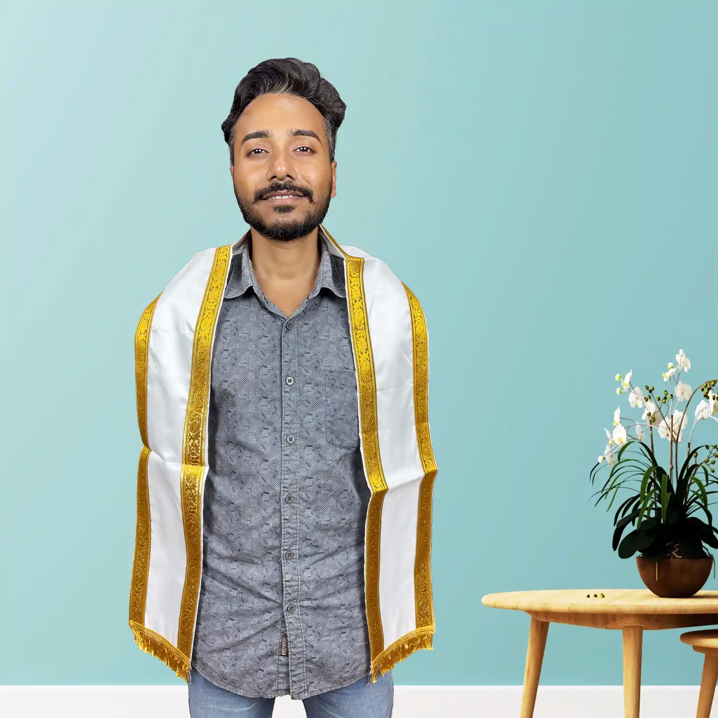 This premium white uttoriyo with a golden border is designed for high-honour events, making it perfect for chief guest uttoriyo presentations, corporate felicitation uttoriyo stages, and award ceremony uttoriyo moments. The rich border enhances guest welcome uttoriyo rituals and brings a regal charm to inauguration uttoriyo programmes. Frequently chosen for spiritual gatherings, cultural functions and VIP recognition, this affordable uttoriyo blends tradition with prestige. A reliable budget uttoriyo for events where dignity and honour are essential, it elevates the recipient’s experience instantly.