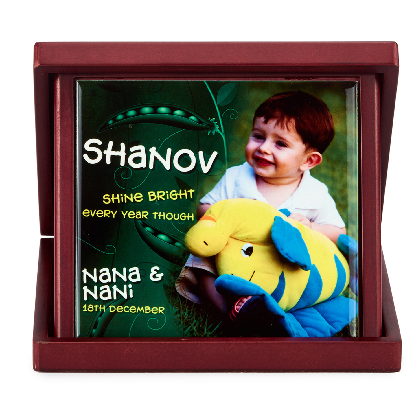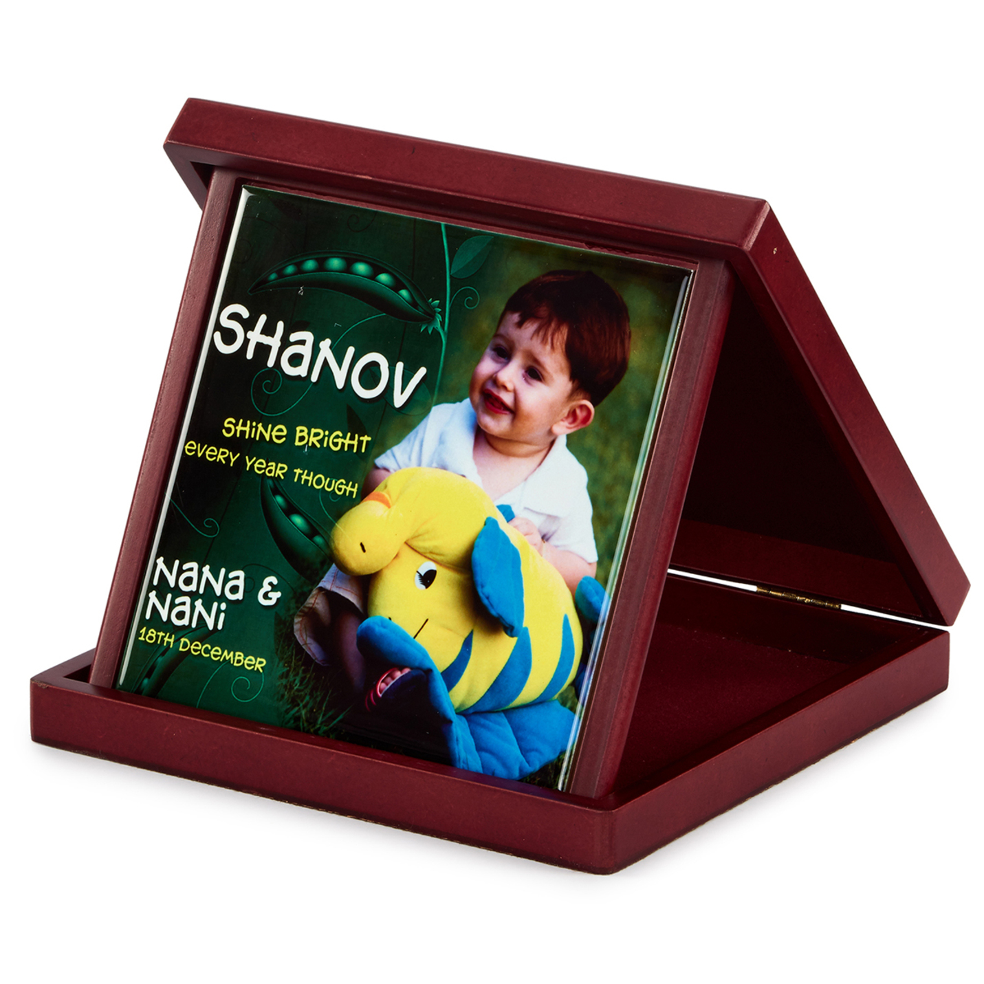 1 x Personalised Ceramic tile in Wooden foldable box. Size 6 X 6 inch